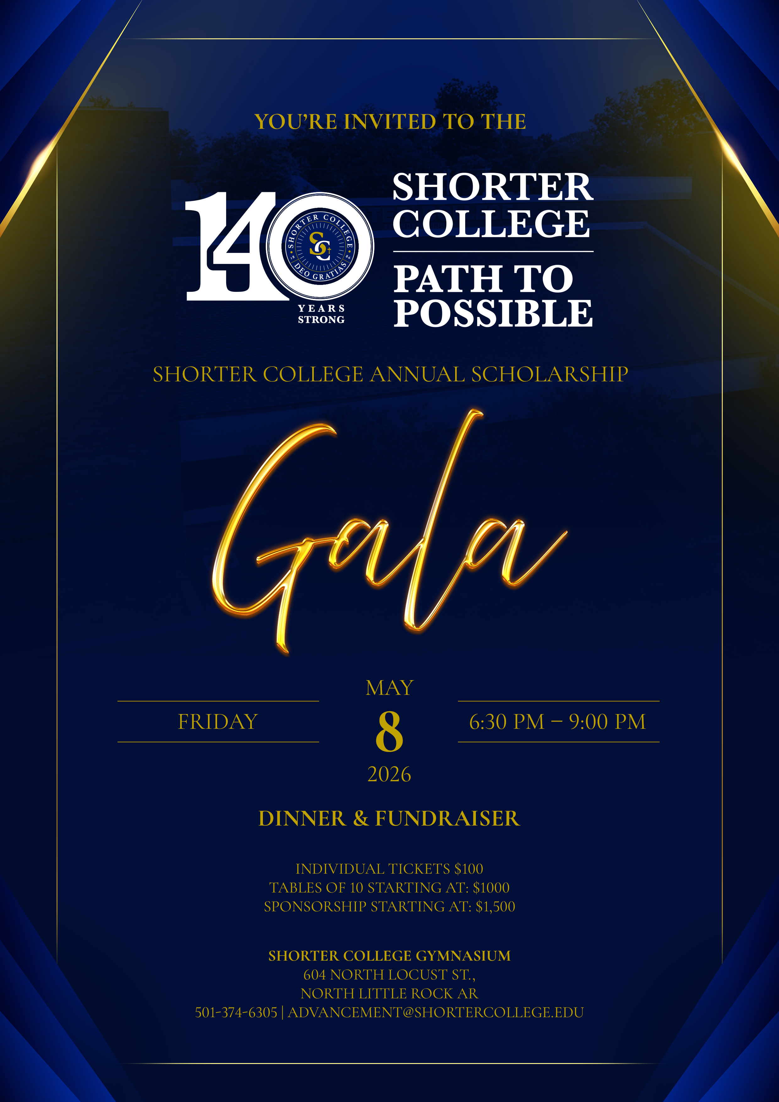 We invite you to join us on May 8th from 6:30 PM to 9:00 PM at Shorter College as we gather in celebration of 140 years of legacy, excellence, and community.